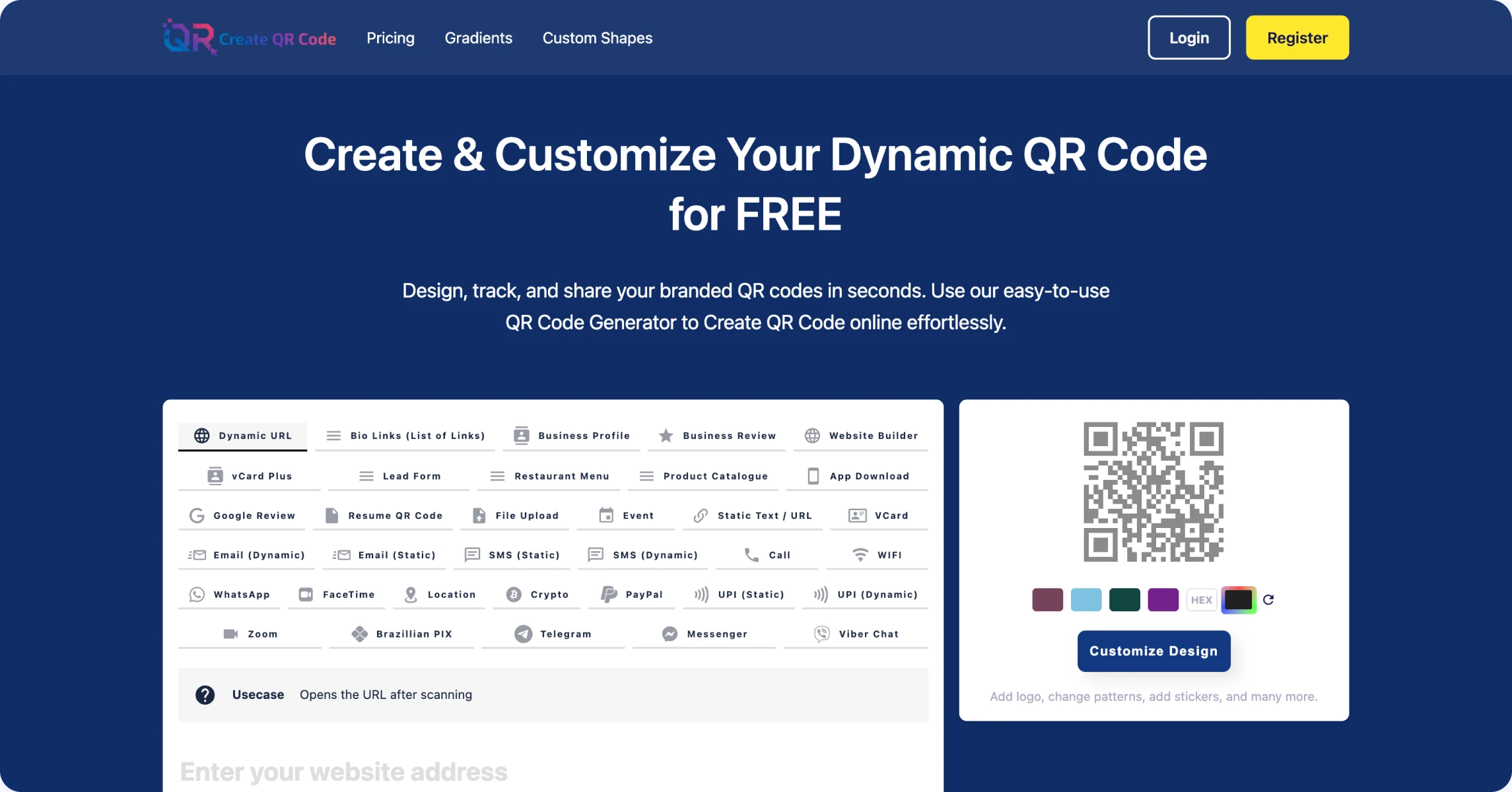 Create QR Code is an advanced yet easy-to-use QR Code Generator that lets you design, customize, and track dynamic QR codes in seconds.