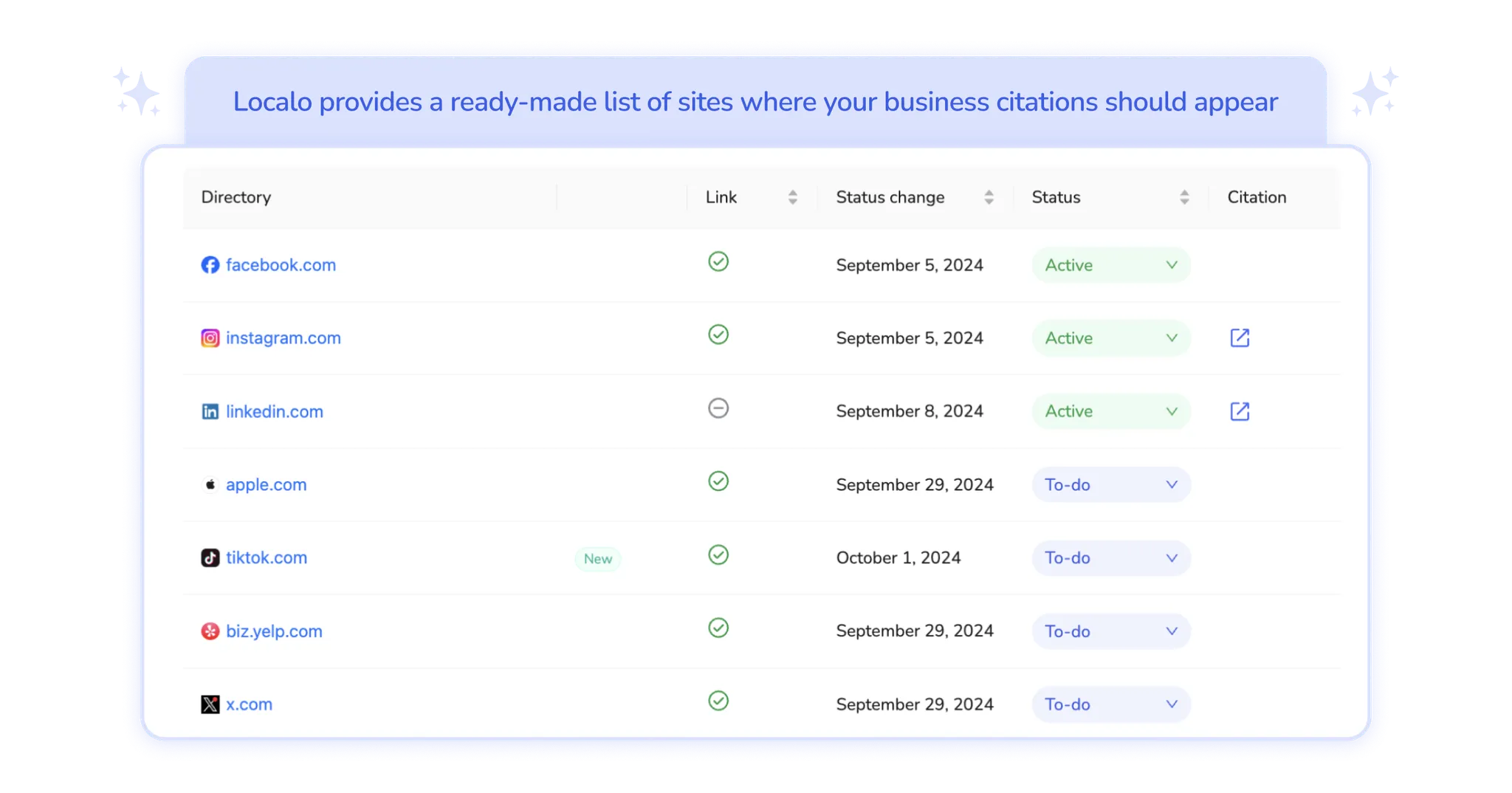 Dazu gehört auch die Identifizierung und Korrektur von Fehlern in Brancheneinträgen, um sicherzustellen, dass Ihre Geschäftsinformationen im gesamten Internet konsistent und korrekt sind.