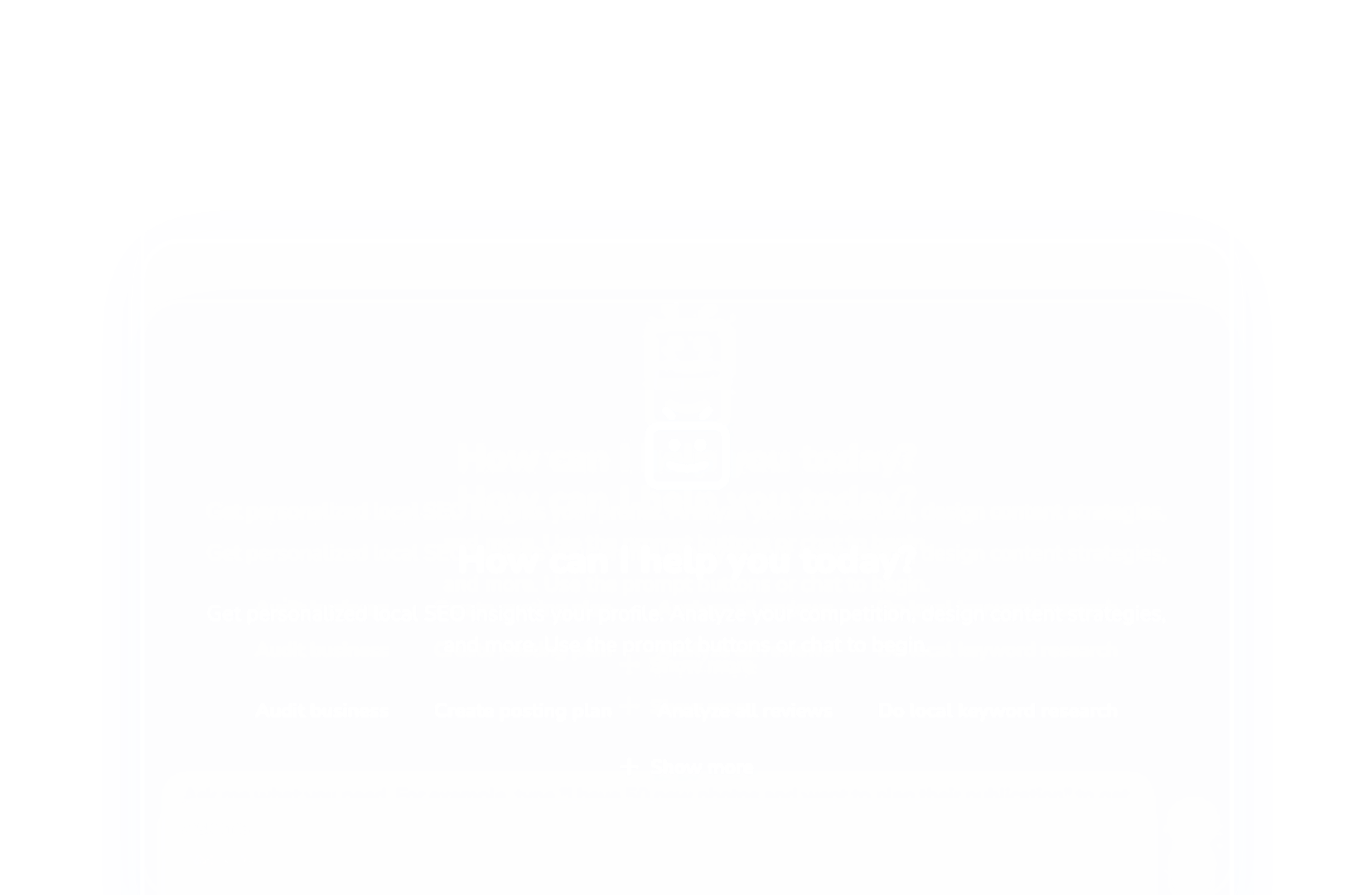 Der Localo KI-Agent analysiert Ihr Unternehmen, Ihre Branche und den Wettbewerb automatisch durch umfassende Audits. Ihre einzige Entscheidung? Wählen Sie aus vorgefertigten Prompt-Buttons oder geben Sie Ihre spezifischen Anforderungen direkt im Chat ein.