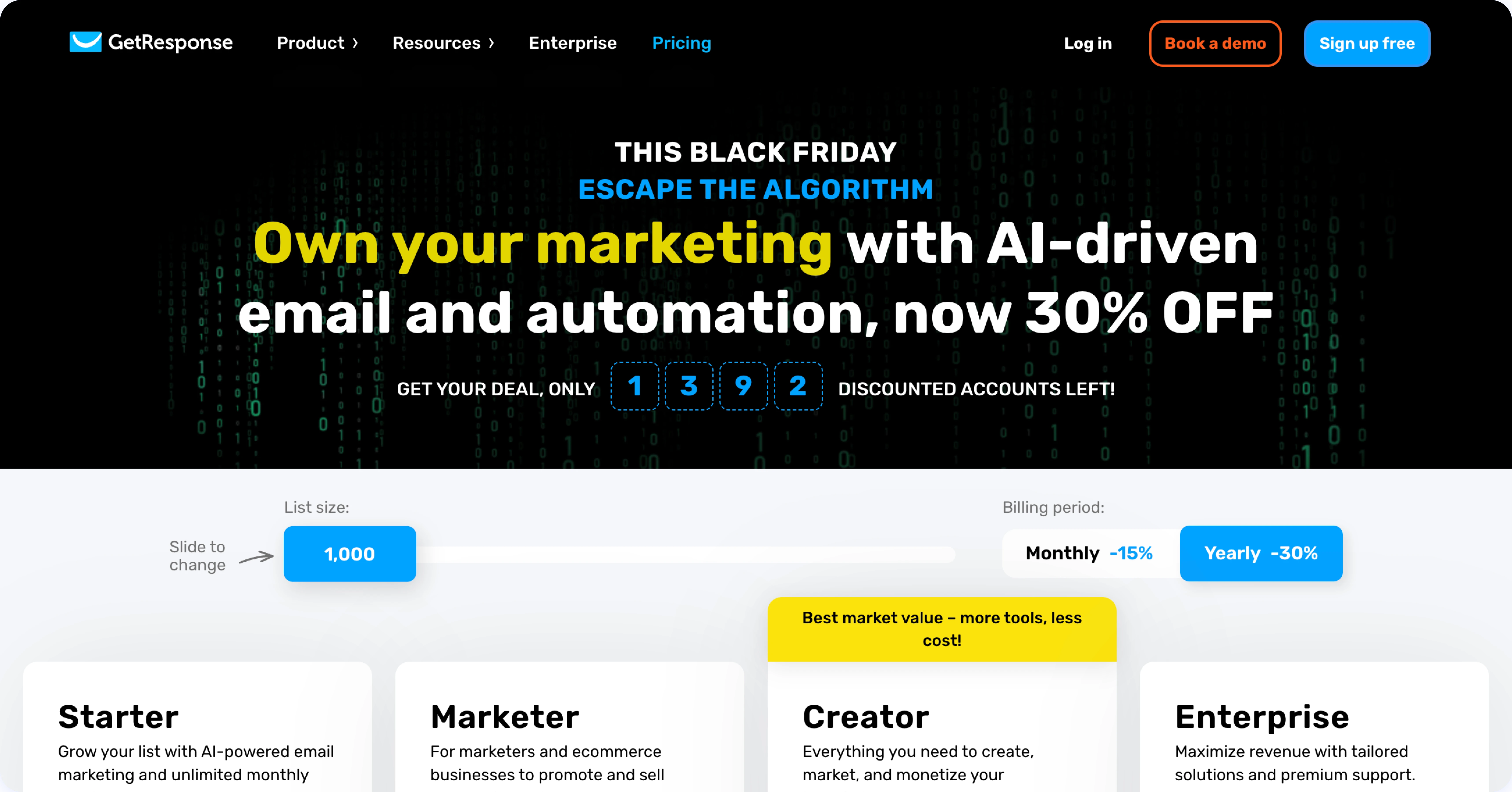 GetResponse es una plataforma de marketing por correo electrónico que va más allá de los boletines básicos, integrando campañas de correo electrónico, páginas de destino, flujos de trabajo de automatización multicanal, webinars y herramientas orientadas al comercio electrónico.