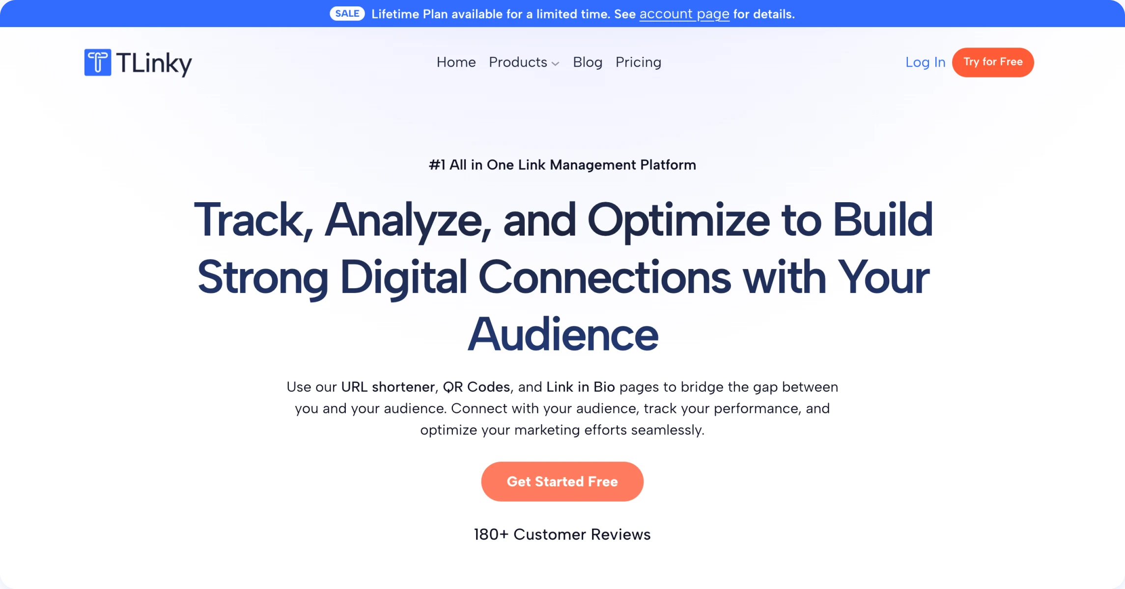 TLinky es una plataforma de gestión de enlaces todo en uno y un conjunto de herramientas de marketing digital diseñado para ayudar a creadores, emprendedores y empresas a crecer de manera más inteligente en línea.