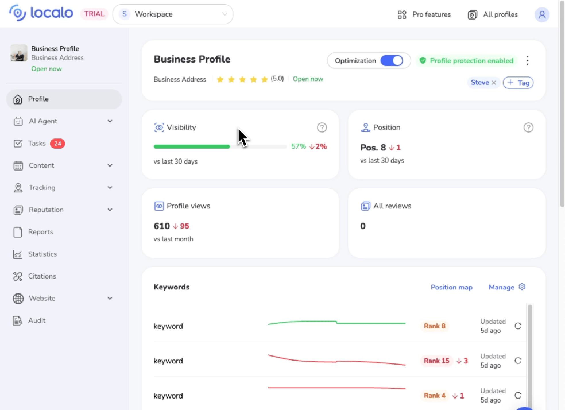 Grâce à l’automatisation et aux fonctionnalités basées sur l’IA, Localo vous permet d’optimiser vos fiches Google plus rapidement, de suivre vos classements locaux plus facilement et d’obtenir de meilleurs résultats pour vos clients ou votre entreprise.