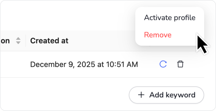 Quando o novo cliente disser 'sim', ative-o em poucos instantes. Basta clicar em 'Ativar perfil' e você já pode começar a trabalhar na otimização. Tudo no Localo, sem ferramentas ou assinaturas adicionais.
